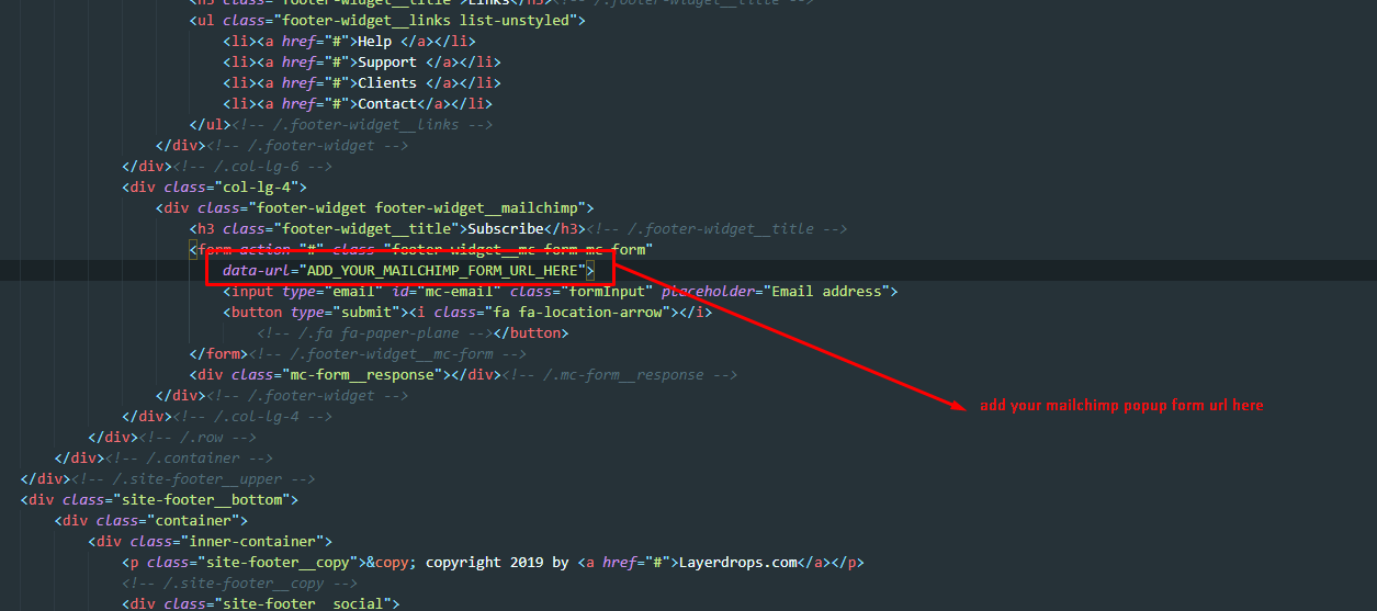 You have to add mailchimp popup form URL. You can find mailchimp dashboard